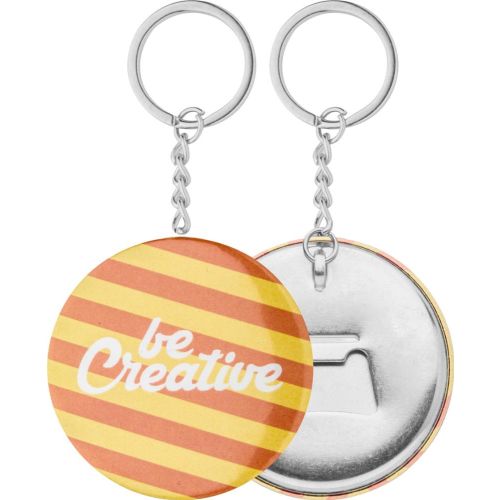 Großer Button-Schlüsselanhänger mit Flaschenöffner und individuellem Papiereinleger. Der Preis ist inkl. Digitaldruck. Mindestmenge: 100 Stk.