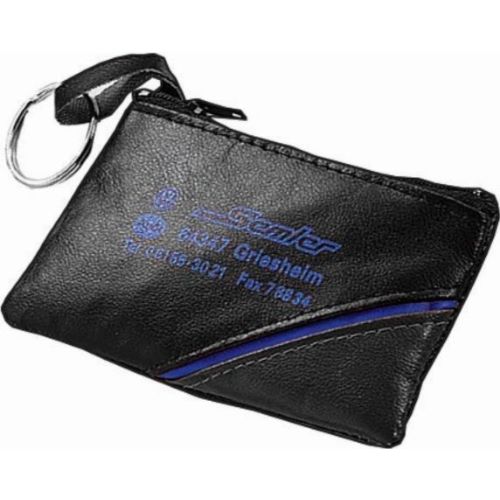 Repräsentative Schlüsseltasche mit farbigem Akzent, strapazierfähige Qualität mit Nylonreißverschluss. VPE 500. 30mm Schlüsselring.