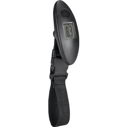 Digitale Kofferwaage aus ABS. Maximalgewicht: 40 kg. Enthält 1 CR2032-Batterie. Es handelt sich um einen Werbeartikel. 37 x 100 x 27 mm