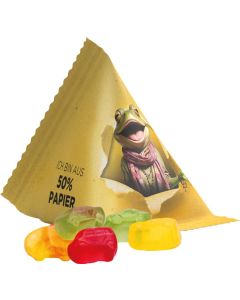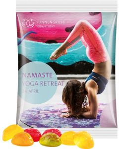 Machen Sie Ihre Angebote doch einmal besonders schmackhaft und legen Sie einfach mal eine Tüte Fruchtgummi bei. Damit machen Sie Ihren zukünftigen Geschäftspartner*innen nicht nur eine besondere Freude, sondern sensibilisieren ihn durch den individuellen Logo-Aufdruck auch für Ihre Produkte, Ihre Marke und Ihr Unternehmen. Damit schaffen Sie einen positiven Wiedererkennungswert.