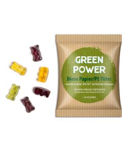 31. Fruchtgummi Standardform im nachhaltigen Werbetütchen, 15 g - Füllvariante nach Wahl - inkl. Werbedruck