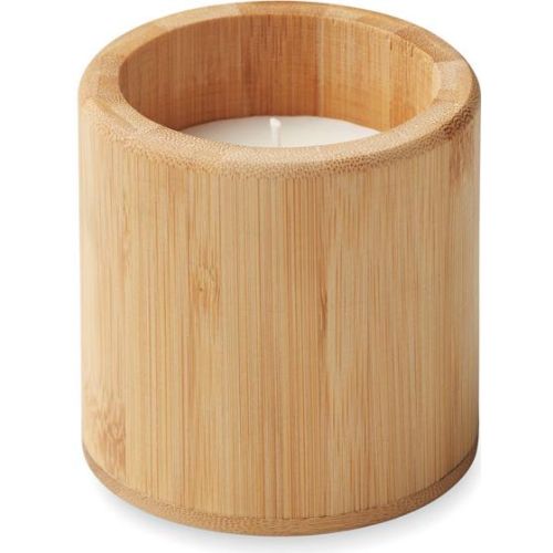 Kerze in einem Halter aus Bambus. Wachs auf pflanzlicher Basis. Vanille Duft. 160 g. Brenndauer: 30 Stunden. Bambus ist ein natürliches Produkt, es kann daher zu leichten Abweichungen in Farbe, Dekor und Maßen kommen.160gr.