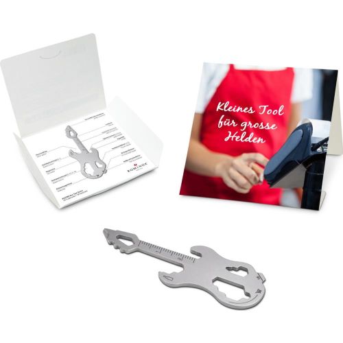 Überraschen Sie Ihre Mitarbeiter, Kunden oder Geschäftspartner mit Multifunktionstools als Schlüsselanhänger: ein ideales Geschenk nicht nur zum Geburtstag oder zu Weihnachten und nicht nur für Männer. Mit den kleinen Begleitern von haben Sie die praktischsten Werkzeuge wie Schraubenzieher, Lineal oder Sechskantschlüssel immer dabei, egal ob im Alltag, im Büro oder auf Reisen. Das Key Tool kommt in einem Einzelhandel Helden-Mäppchen inkl. Funktionsbeschreibung. An die Werkzeuge, fertig, los! Finden Sie die perfekte Kombination aus Ihrem Lieblings Keytool und Motiv-Mäppchen. Auf Wunsch auch mit Gravur und/oder im Mäppchen im Eigendesign erhältlich. Standardartikel unveredelt versandfertig in ca. 2-3 Tagen, veredelte Ware versandfertig in ca. 2-3 Wochen. Expressversand möglich. Lieferung erfolgt ab Werk.