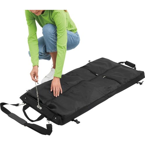 Kleidersack SMOKING: stabiler Metall-Aufhängehaken mit extra Klettverschlussfach, 2 Tragegriffe mit Klettverschluss-Verstärkung, 2 seitliche Kompressionsverschlüsse, 2 Reißverschluss-Vortaschen, innen 1 Reißverschluss-Fach und 2 kleine Reißverschluss-Fächer, verstell- und abnehmbarer Gurt mit Schulterpolster.