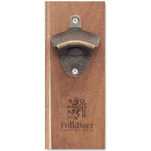 Kapselheber aus Akazienholz und Eisen. Mit starkem Magnet zum Auffangen der Kronkorken und zur Befestigung am Kühlschrank.