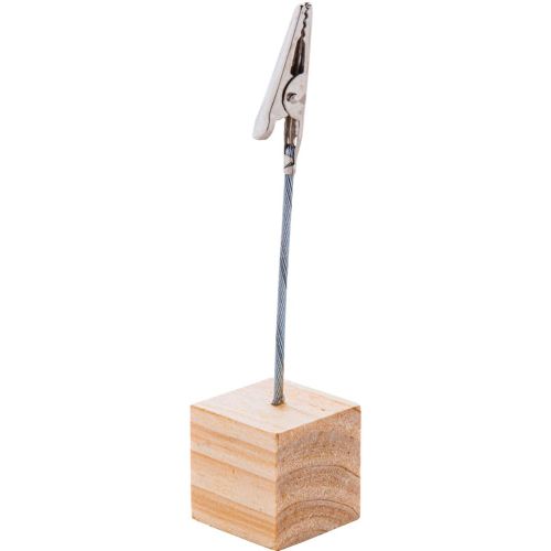 Memohalter mit Sockel aus Kiefernholz und Metall-Klammer.