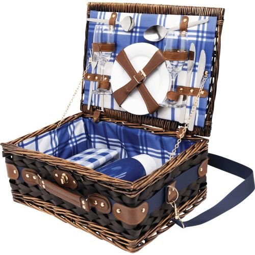 Picknickkorb CENTRAL PARK für 2 Personen: inkl. Edelstahl-Besteck, Porzellanteller, Sektgläser aus Glas, Isolierkanne mit Becher, Tischdecke, mit Schultergurt, Tragegriff und Drehverschluss.