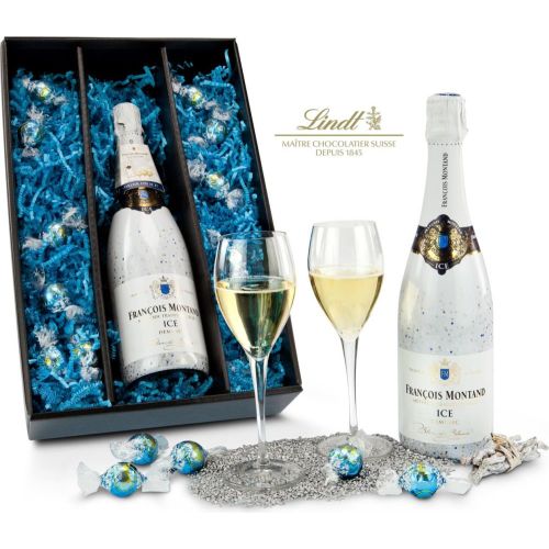Das ist eine wirkliche ICE-Kreation! Dieser halbtrockene Sekt mit der weißen Flaschenfolie wird auf Eis serviert. 2 Gläser liegen mit im Set - in eisblauem Sizzle. 10 Lindt-Lindorkugeln Stracciatella (je 12,5 g), eingewickelt in eisblauem Papier komplettieren das Set. Probieren Sie sie zum Sekt - das ist eine perfekte Kombination. DRINK ON ICE! Standardartikel unveredelt versandfertig in ca. 2-3 Tagen, veredelte Ware versandfertig in ca. 2-3 Wochen. Expressversand möglich. Lieferung erfolgt ab Werk. Bitte hier klicken: Zusatz-Infos nach Lebensmittel-Informationsverordnung.