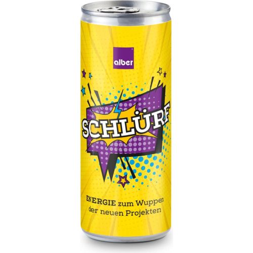 Der Energy Drink versorgt Ihre Kunden mit geballter Power aus der Dose. Nicht nur beim Sport oder Veranstaltungen, sondern auch auf Messen oder im Büro erfrischt der Drink durch die bekannten Inhaltsstoffe Koffein, Taurin und Kohlensäure Körper und Geist und bringt jedermann in Schwung. Power Drink mit Koffein (30 mg/ 100 ml), Taurin, Kohlensäure und Vitamin B3, B5, B6 und B12. 0,25 l Slimline Dose in Silber! Erhältlich mit unseren Etikettenvarianten Basic (Eco Papier-Etikett), Standard (Folien-Etikett), Premium (Fullbody-Etikett) und Premium+ (Fullbody-Etikett mit Soft-Touch). Zzgl. Pfand 0,25 € in Deutschland. Veredelte Ware versandfertig in ca. 2-3 Wochen. Expressversand möglich. Lieferung erfolgt ab Werk. Dieser Artikel ist nur mit Werbedruck erhältlich! Bitte hier klicken: Zusatz-Infos nach Lebensmittel-Informationsverordnung.