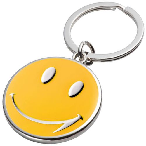 Fröhlicher Schlüsselanhänger aus Metall mit einem lächelnden Gesicht. Ihre Werbung bringen wir mittels einer Lasergravur auf der Rückseite an. Der Artikel wird unter folgender Katalog-Artikelnummer geführt: 3474.
