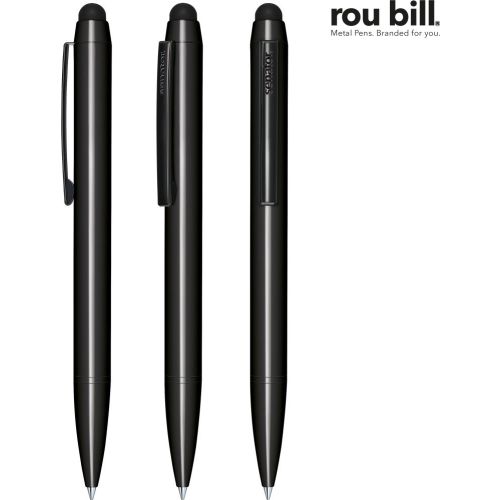 rou bill Attract Drehkugelschreiber, rou bill Qualitäts-Met. -Großraummine, Minentyp: G2, Schreibfarbe: blau Moderner Metallkugelschreiber mit zusätzlicher Touch Pad Funktion- Hochwertiger lackierter Messingschaft kombiniert mit schwarz lackierten Metall-Beschlagteilen- Angenehmes Gewicht- Große Werbeflächen im Druck und Gravur- Chrome-Untergrund für attraktive Lasergravuren. Ab einer Menge von 10.000 Stück erfüllen wir auch individuelle Farbwünsche. Nennen Sie uns die PANTONE® Nummer Ihrer gewünschten Farbe und wir produzieren den Kugelschreiber oder auch nur ein spezifisches Teil in Ihrem ganz persönlichen Farbton.