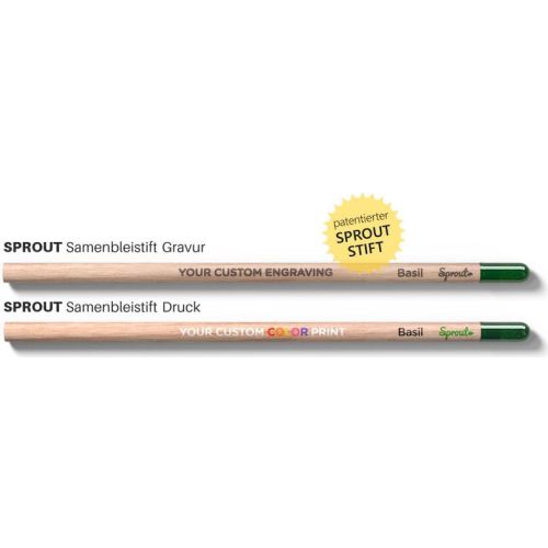Weltweit patentierter Bleistift mit Samen. Handmade in Europa, Holz aus nachhaltiger Forstwirtschaft (Lindenholz oder ähnliches Holz), hochwertige HB Mine, garantiert umweltfreundliche und sozial einwandfreie Herstellung. Erhältlich in 11 Samensorten: Basilikum, Thymian, Kirschtomate, Koriander, Salbei, Vergissmeinnicht, Chia, Sonnenblume, Gänseblümchen, Landnelke und Weihnachtsbaum/Fichte. ->Die Sorten können zu 100er Einheiten gemischt werden. Samensorte kann in Deutsch oder Englisch gelasert werden. Bleistift mit Samensorte und "Sprout" Logo gelasert. *Stift ungespitzt, Anspitzen gegen Aufpreis möglich. *Sorte Weihnachtsbaum/Fichte gegen Aufpreis.
