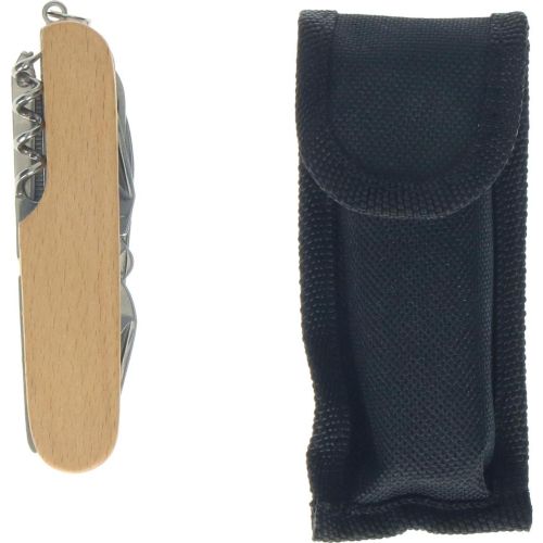 Taschenmesser aus Edelstahl mit einem Griff aus Buchenholz und elf verschiedenen Tools: Korkenzieher, Nähahle, Nagelfeile, Plastikschneider, Kreuzschraubenzieher, Messer, Säge, Fischschuppenentferner, Schere, Dosenöffner und Flaschenöffner mit Schlitzschraubenzieher. Schlüsselring inklusive. Da es sich beim Holz um ein Naturprodukt handelt, können Schwankungen in Farbe und Maserung nicht ausgeschlossen werden. Hinweis: Der Artikel besteht aus Natur-Material. Aus diesem Grund sind Abweichungen bei der Oberflächenbeschaffenheit, bei der Farbe und beim Druck/Laser nicht zu vermeiden! Bitte beachten Sie, dass wir alle Produkte mit einem Herstellernachweis versehen müssen. Unsere Produkte sind standardmäßig mit unserer Adresse gekennzeichnet. Eine Änderung kann gerne gegen einen Aufpreis nach Absprache vorgenommen werden. Verpackung: Einzelkarton + Nylonetui.