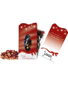 Keine Advents- und Weihnachtszeit ohne Tee und Gebäck! Punkten Sie bei Mitarbeitern und wichtigen Kunden mit Teesets in edlen Geschenkboxen, denn das beliebte Heißgetränk schenkt eine einfach unvergleichlich entspannende Auszeit vom hektischen Arbeitsalltag. Wählen Sie aus vielen verschiedenen Teesets, die so gut wie alle Geschmacksrichtungen vom fruchtigen Grüntee bis zum angesagten Black Chai abdecken. Mit Werbedruck versehene edle Verpackungen werden auch nach der Weihnachtszeit in Büro und Haushalt gerne weiterverwendet. Pfiffiger Hingucker für Teeliebhaber sind Tees in Tannenbaumform - ideal für schnelle Teepausen und mit maximalem Erinnerungseffekt. Köstliches Gebäck und feine Pralinen machen Teestunden noch schöner. Schenken Sie feines Marzipangebäck, das nicht nur ideal zu Tee passt, sondern auch für sich allein ein wahrer Genuss ist. Hier erhalten Sie hochwertige Markenfabrikate mit zartschmelzender Bitterschokolade, die mit Ihrem Werbedruck zu einem Glanzpunkt für Naschkatzen werden. Oder Sie verschenken klassischen Christstollen und traditionelle Lebkuchen - ob einzeln oder im Set, kaum ein Gebäck ist so eng mit der Weihnachtszeit verbunden. Als neutralere Option entscheiden Sie sich für erlesene Trüffel: handgefertigt und in der Geschenkverpackung mit Ihrem Werbedruck sicher gelagert, erfreuen sie alle, die es süß lieben. Hier wählen Sie zwischen Schmuckdosen, aufwändigen Tüten oder Geschenkboxen - immer passend zum Empfänger.