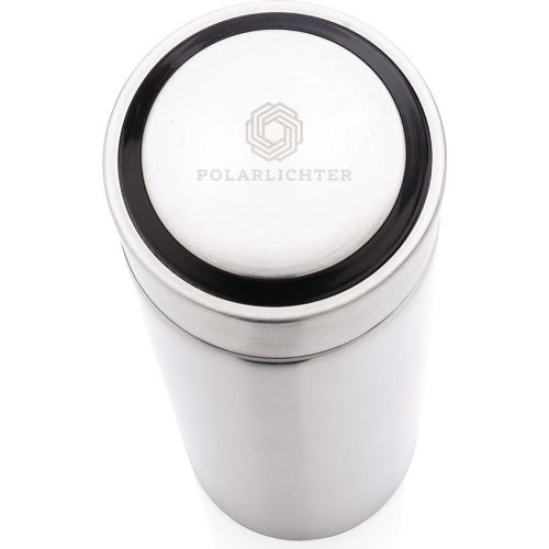 Halten Sie Ihren Kaffee oder Tee mit dieser Vakuum-Edelstahlflasche mit gebürstetem Metalldeckel schön warm. Die Flasche verfügt über einen auslaufsicheren Schraubdeckel und ermöglicht das Trinken von jeder Seite. Mit breiter Öffnung für eine einfache Reinigung. Kapazität 450 ml. BPA-frei. Nur Handwäsche. Gebrauch von Bisphenol A-freien Materialien, Konformität mit der deutschen Lebensmittelsicherheitsgesetzgebung ( LFBG), Konformität der Richtlinie für den Inhalt von Phtalaten, frei von einzel- und mehrkettige, chlorinierten Paraffinen. Verpackung: Geschenkverpackung.