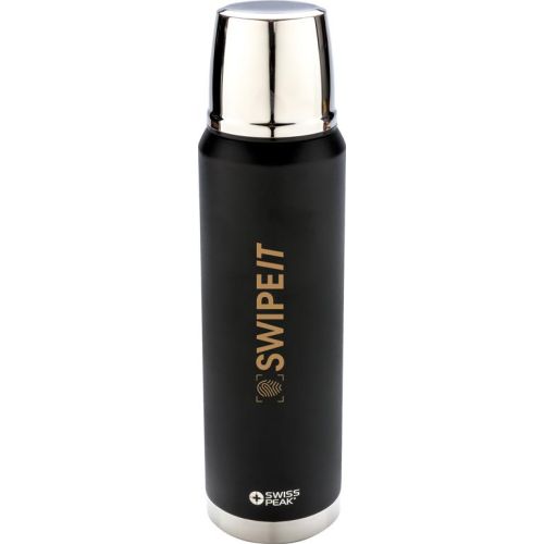 Die Swiss Peak Elite Serie überzeugt durch eine Vakuum-Isolierung und ist doppelwandig aus 18/8 Stainless-Steel. Die schwarze Pulverbeschichtung ist äußerst langlebig - keine Abnutzung oder Kratzer mehr! Die Innenseite ist mit Kupfer beschichtet um den Inhalt 8h warm oder 24h kühl zu halten. Nur Handwäsche. Auslaufsicher. 1000 ml. Konformität mit der deutschen Lebensmittelsicherheitsgesetzgebung ( LFBG), Konformität zur SVHC-Richtlinie 1907/2006/EC, frei von einzel- und mehrkettige, chlorinierten Paraffinen, Gebrauch von Bisphenol A-freien Materialien. Verpackung: Polybag und Einzelverpackung.