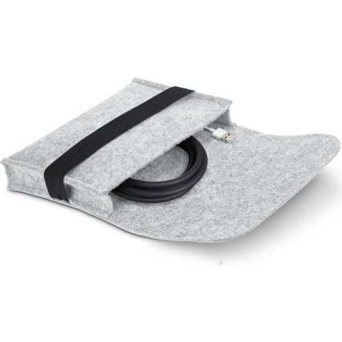 Hochwertige Filztasche als moderner Organizer mit Gummiverschluss, stilvoll meliertes Hellgrau, handliches, praktisches Design, ideal zur Aufbewahrung von Kabeln, externen Festplatten, USB-Sticks oder anderen Kleinigkeiten (veganes Filz aus 100 % recyceltem PET, zertifiziert nach Global Recycling Standard). Standardartikel unveredelt versandfertig in ca. 2-3 Tagen, veredelte Ware versandfertig in ca. 2-3 Wochen. Expressversand möglich. Lieferung erfolgt ab Werk.