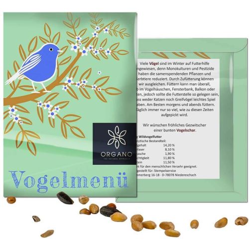 Die Themen Insektensterben und Flächenversiegelung sind in aller Munde. Eine Auswirkung ist ein massives Vogelsterben, da diese keine Nahrung mehr finden und somit die gefiederten Gesellen immer weniger werden. Mit dem Vogelfutter-Tütchen aus Recyclingpapier, in dem 20 g leckere Körner enthalten sind, kann der Kunde für die Artenvielfalt der zwitschernden Tiere aktiv werden und Gutes tun. Das Produkt eignet sich beispielsweise als Beigabe zum Vogelhäuschen oder einzeln für das nächste Mailing. Das in manchen Körnern enthaltene ätherische Öl kann in vereinzelten Fällen minimale Flecken auf der Tüte hinterlassen. Inklusive Werbedruck, zuzüglich Druckvorkosten. Lieferzeit: 3-4 Wochen.