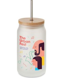 Dieses Retro-Trinkglas hat einen Schraubverschluss, einen PP Trinkhalm und eine Füllmenge von 450 ml. Werbedruck per Etikett auf Anfrage. Ihr Logo kann per Digitaldruck, Lasergravur, Tampondruck oder Transferdruck angebracht werden.