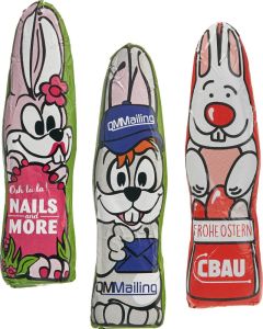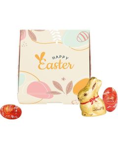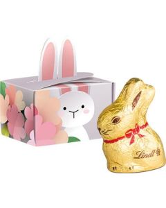 Lindt & Sprüngli „Osterhase“, Hohlfigur, verpackt in Werbegeschenkbox mit Sichtfenster. Solange Vorrat reicht. Format: ca. 69 x 42 x 93 mm. Inhalt: Vollmilch-Osterhase von Lindt & Sprüngli. Ihr Logo kann per Offsetdruck angebracht werden.