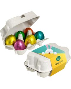 Ein kunterbuntes Oster-Nest für Ihre Werbeziele! Wenn der Frühling ins Land zieht, ist der Osterhase nicht weit. Schon Wochen vor Ostern freuen sich Groß und Klein auf ein bunt gefülltes Osternest und jeder Hase ist ein gern gesehener Vorbote. Ostern ist ein Fest für alle Süßigkeiten-Liebhaber - und zugleich die perfekte Werbezeit für dein Unternehmen, wenn du die Gelegenheit nutzt, deine Zielgruppen mit süßen Oster-Leckereien zu überraschen. Lustige Ostereier in bunten Frühlingsfarben aus Fruchtgummi, ein niedlicher Schoko-Hase, zart-cremige Mini-Pralinés und weitere Oster-Artikel sind hoch wirksame Werbemittel, mit denen du jetzt die Herzen von Kunden und potenziellen Neukunden gewinnst. Wie immer bei absatzplus setzen wir auch bei den Werbeartikeln zu Ostern auf bekannte und allseits beliebte Top-Marken. Spielen Sie also den Osterhasen gezielt für Ihre Osterbotschaften und überraschen Sie Mitarbeitende und Kund*innen mit einer herzlichen Aufmerksamkeit. Nach den perfekten Werbemitteln müssen Sie nicht einmal lange suchen, denn die besten Werbeartikel für frohe Ostern finden Sie hier. Unser Sortiment an saisonalen Werbemitteln zu Ostern ist groß und bietet für jeden Geschmack und deine ganz speziellen Werbeziele den optimalen Werbeartikel. Natürlich spielt der Hase in vielen Variationen dabei eine Hauptrolle. Dazu kommen kreative, aufmerksamkeitsstarke Verpackungslösungen in unterschiedlichen Formen, wie z.B. die Osterboxen, Mini-Osternester in der Dose, unsere einzigartige Werbekarte, der originelle 6er-Eierkarton und vieles mehr. In jedem Fall hast du bei jeder Verpackungsart ideale Möglichkeiten für den Logo-Aufdruck und das individuelle Design deiner Werbebotschaft in Text und Bild. Zeigen Sie Ihren Geschäftspartner*innen, Kund*innen und Neukund*innen mit einem leckeren Gruß 'vom Osterhasen', dass sie dir wichtig sind und Sie erhalten Sympathien für Ihre Marke und Ihr Unternehmen zurück.