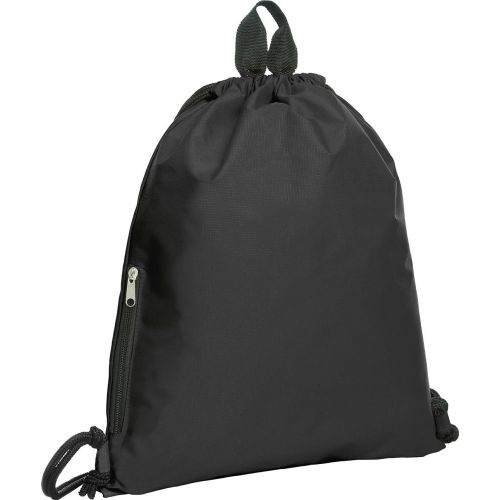 Dieser große Zugbeutel-Rucksack hat ein Hauptfach mit seitlicher Reißverschluss-Tasche, einen Kordelzug und eine Trageschlaufe.